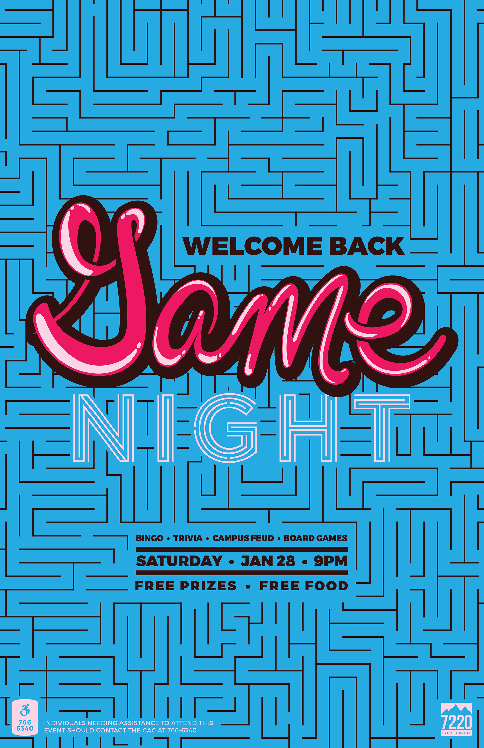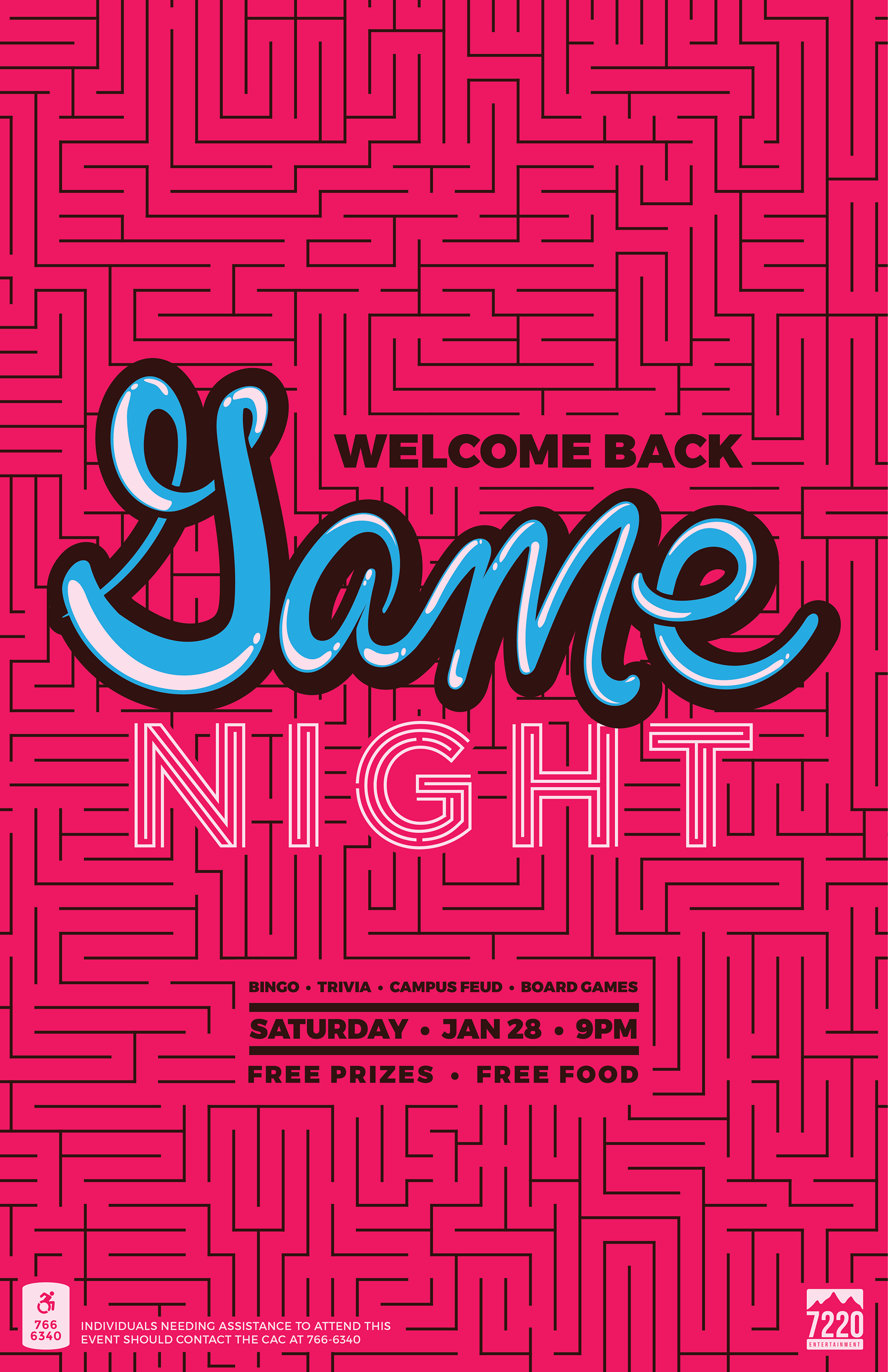 A set of posters I created to promote Game Night 2017 at the University of Wyoming.