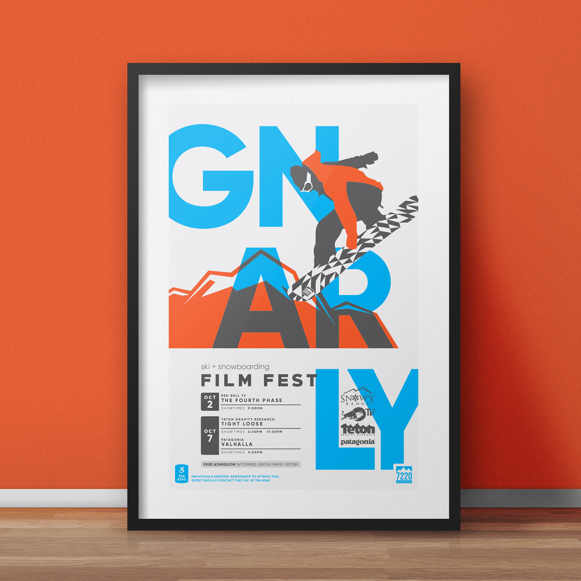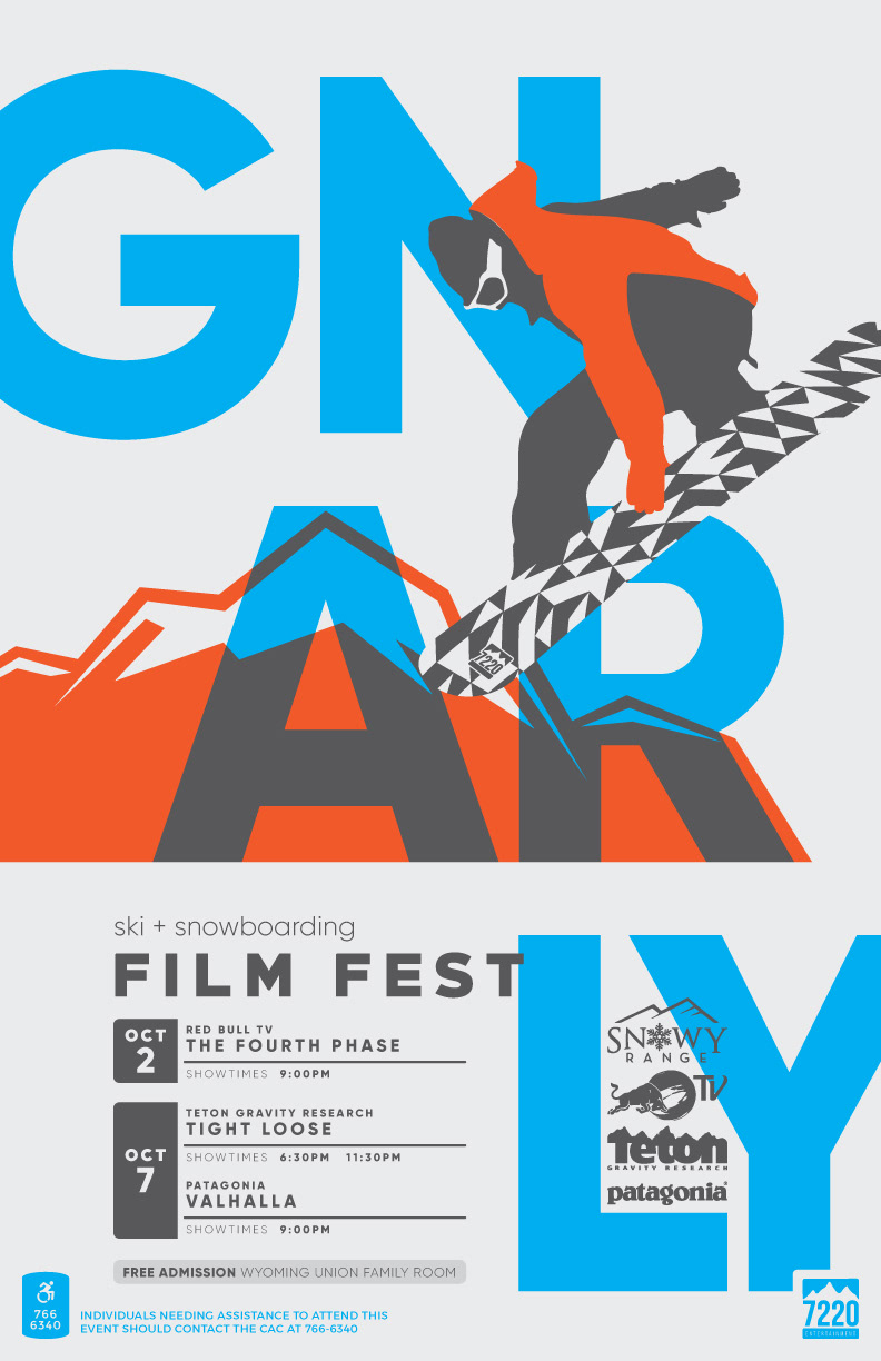 A poster I created for 7220 Entertainment to promote the upcoming Ski and Snowboarding Film Fest.