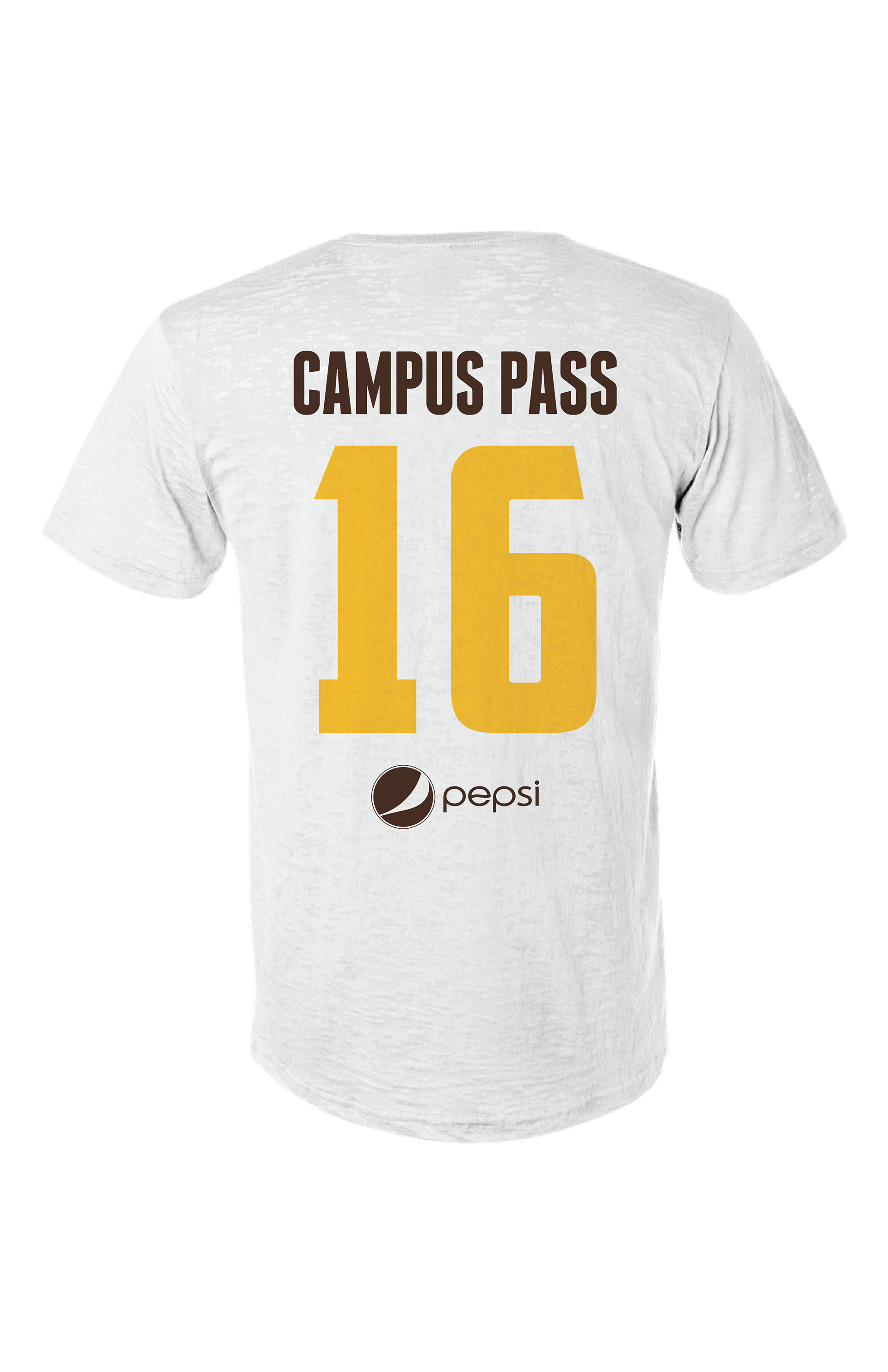 A t-shirt I designed to be given away during Campus Pass, an event that invites perspective students to the University of Wyoming to see the campus, enjoy a football game, and get an overall feel for the University as a whole.